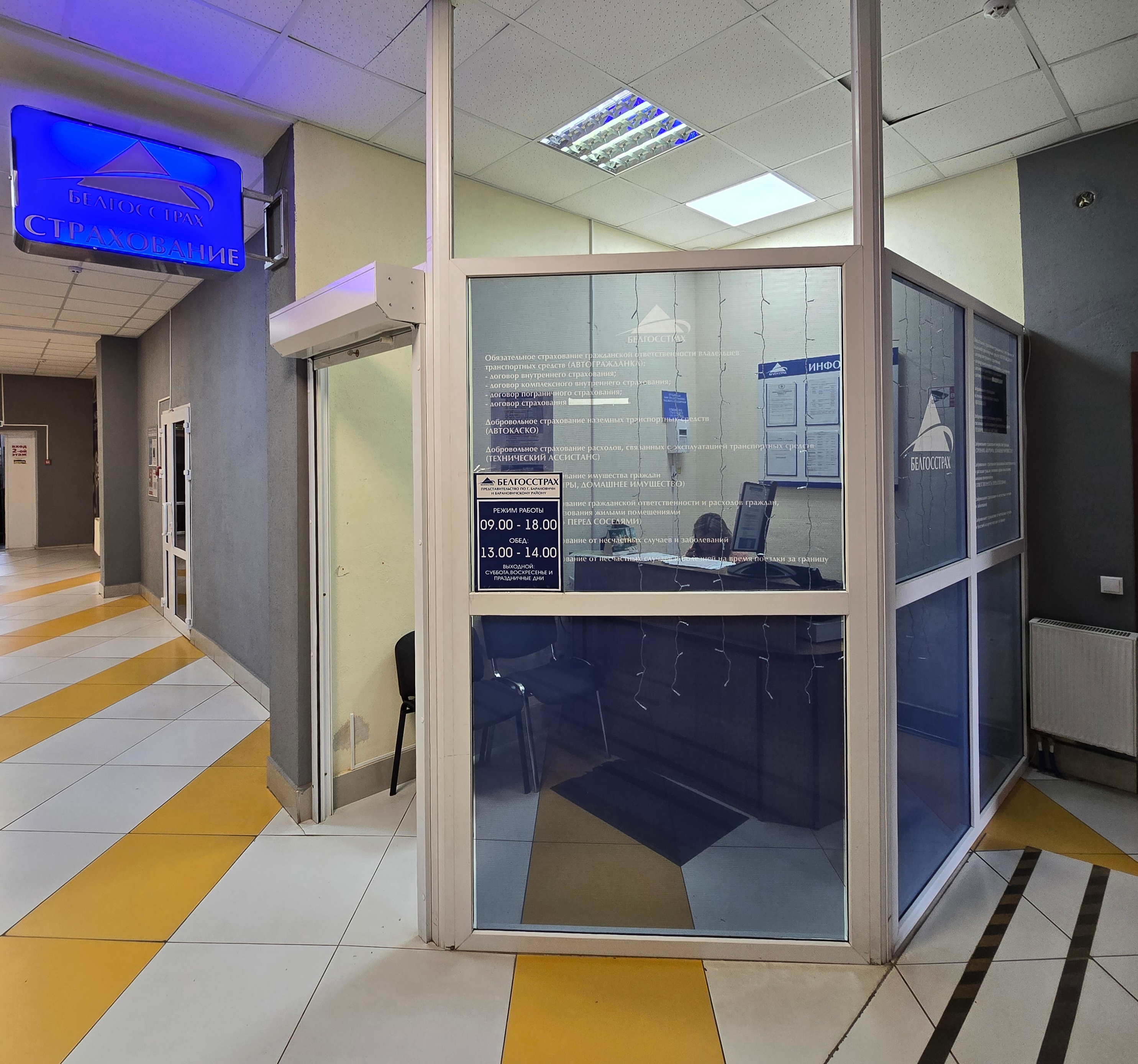 (Страхавы агент на працягу рабочага дня мае права адлучыцца з рабочага месца на нетрывалы час. У такіх выпадках на інфармацыйнай табліцы паказваецца час аднаўлення працы і нумар тэлефона страхавога агента.)