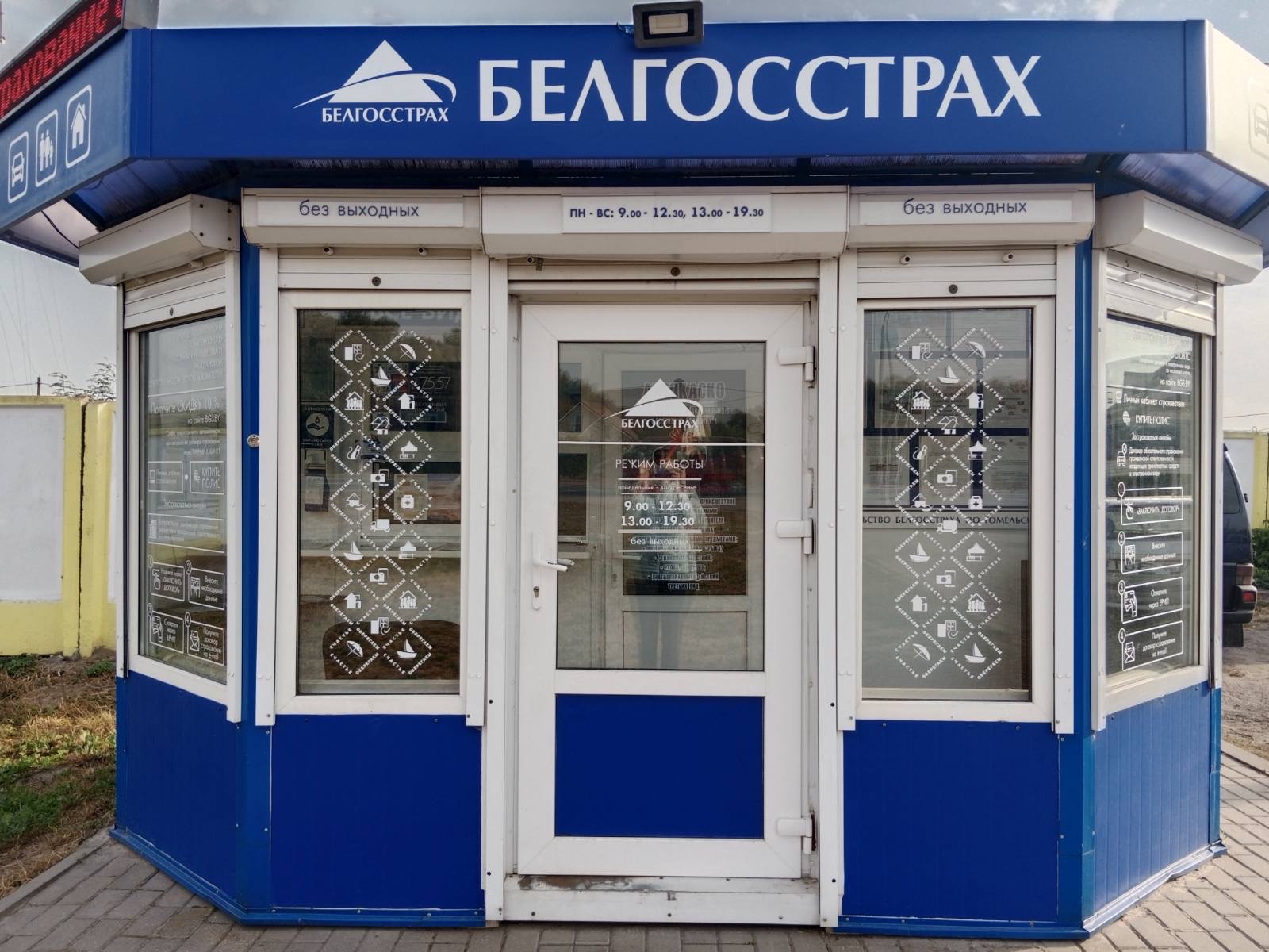 У такіх выпадках на інфармацыйнай таблічцы ўказваецца час аднаўлення працы і нумар тэлефона страхавога агента)