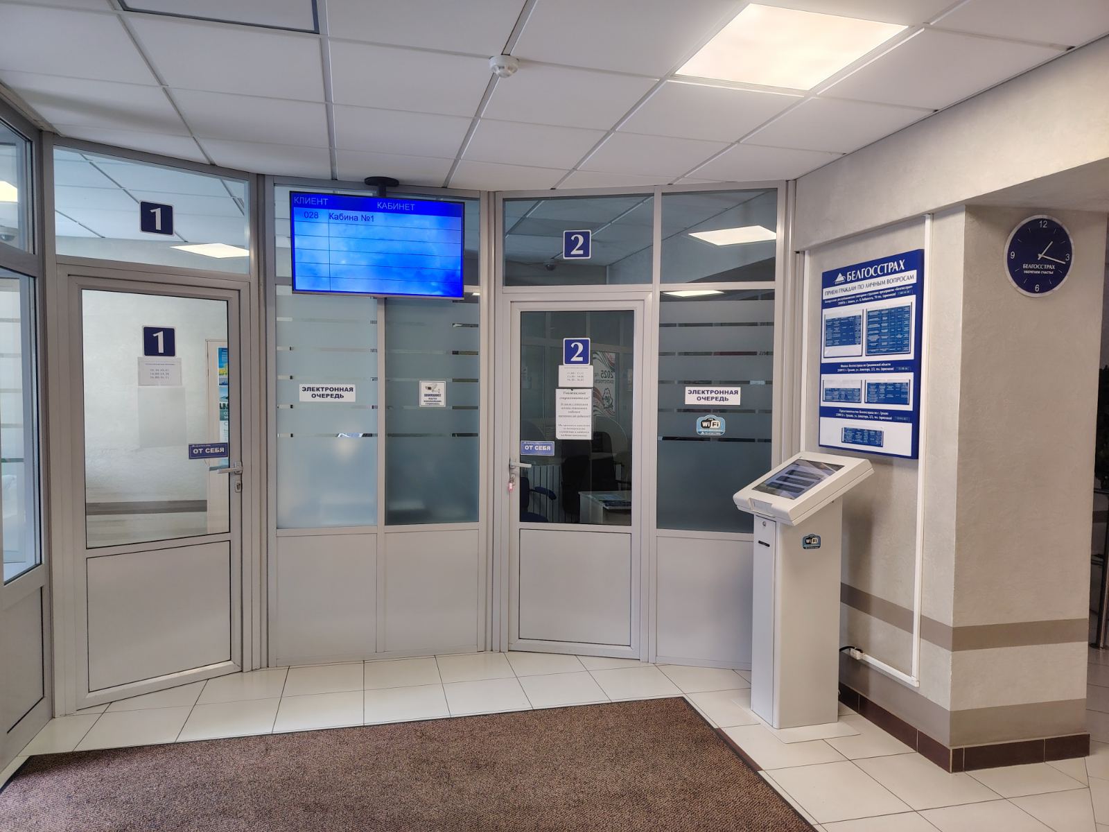 (Страхавы агент на працягу працоўнага дня мае права адлучыцца з працоўнага месца на непрацяглы час. У такіх выпадках на інфармацыйнай таблічцы ўказваецца час аднаўлення працы і нумар тэлефона страхавога агента.)