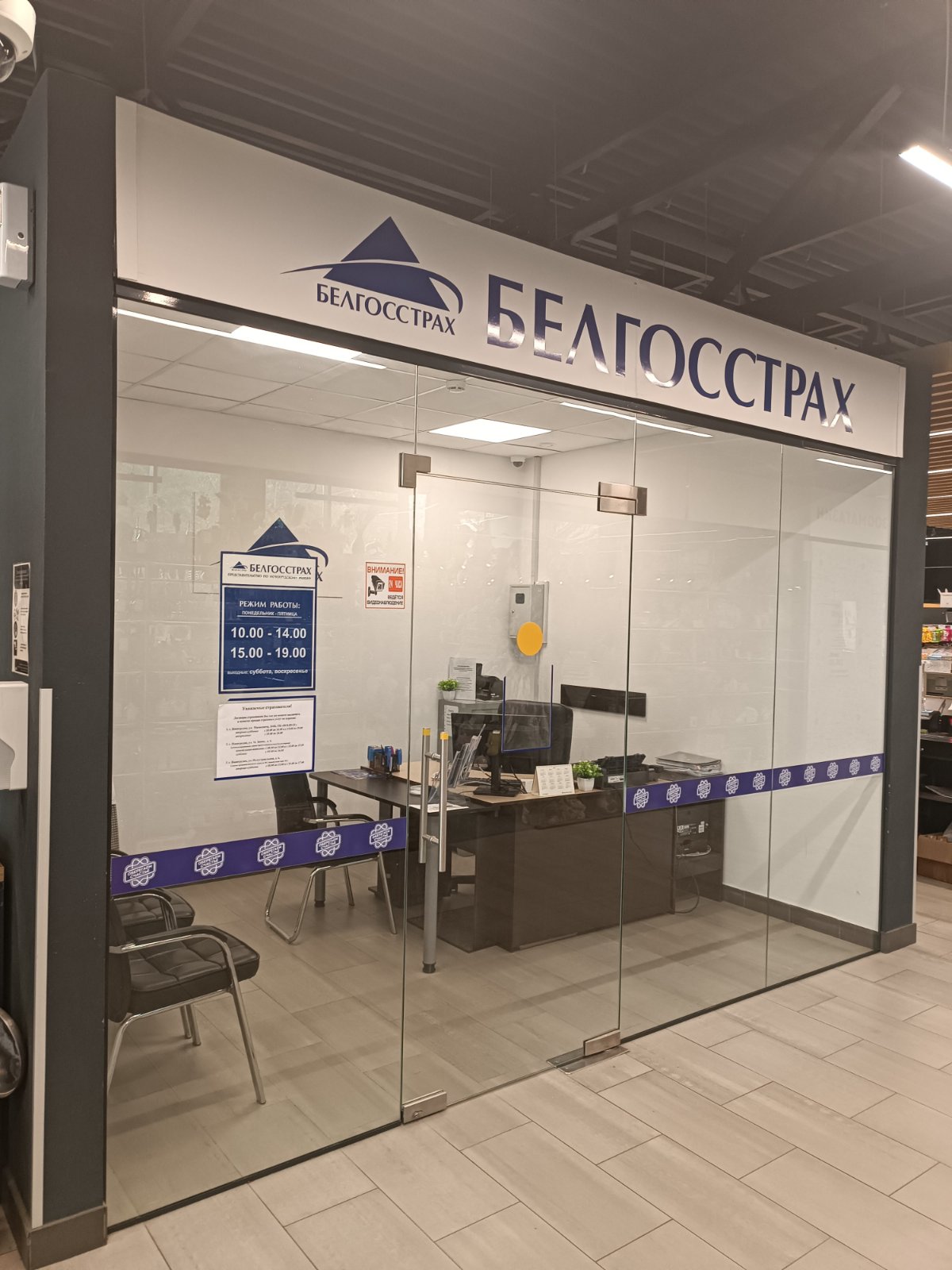 (Страхавы агент на працягу працоўнага дня мае права адлучыцца з працоўнага месца на непрацяглы час. У такіх выпадках на інфармацыйнай таблічцы ўказваецца час аднаўлення працы і нумар тэлефона страхавога агента.)