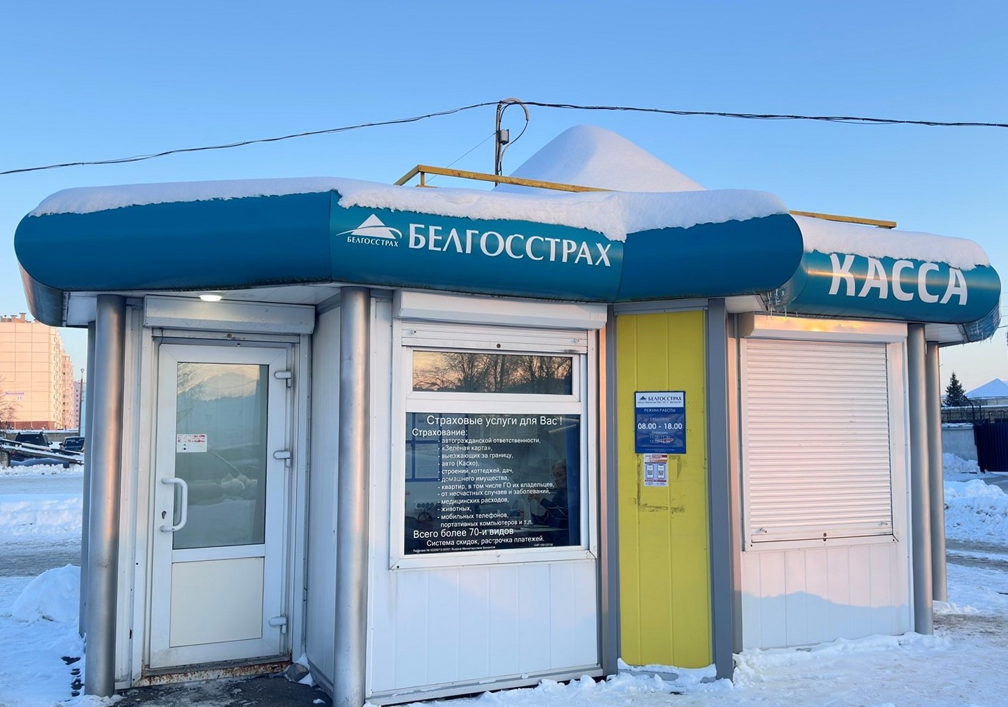 У такіх выпадках на інфармацыйнай шыльдзе ўказваецца час аднаўлення працы і нумар тэлефона страхавога агента).