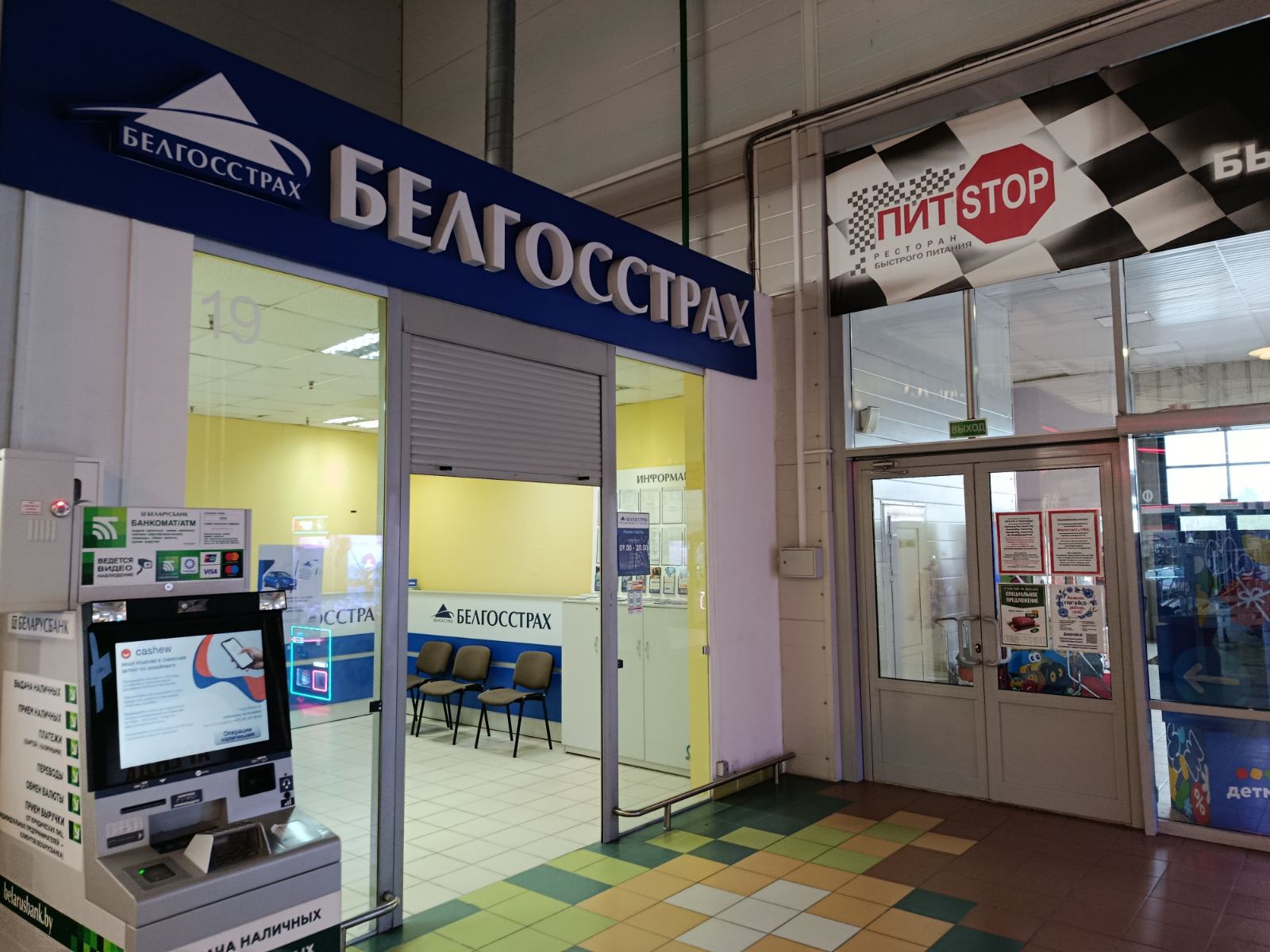 У такіх выпадках на інфармацыйнай шыльдзе ўказваецца час аднаўлення працы і нумар тэлефона страхавога агента).