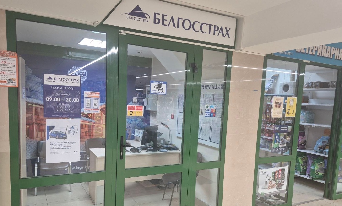 У такіх выпадках на інфармацыйнай шыльдзе ўказваецца час аднаўлення працы і нумар тэлефона страхавога агента).