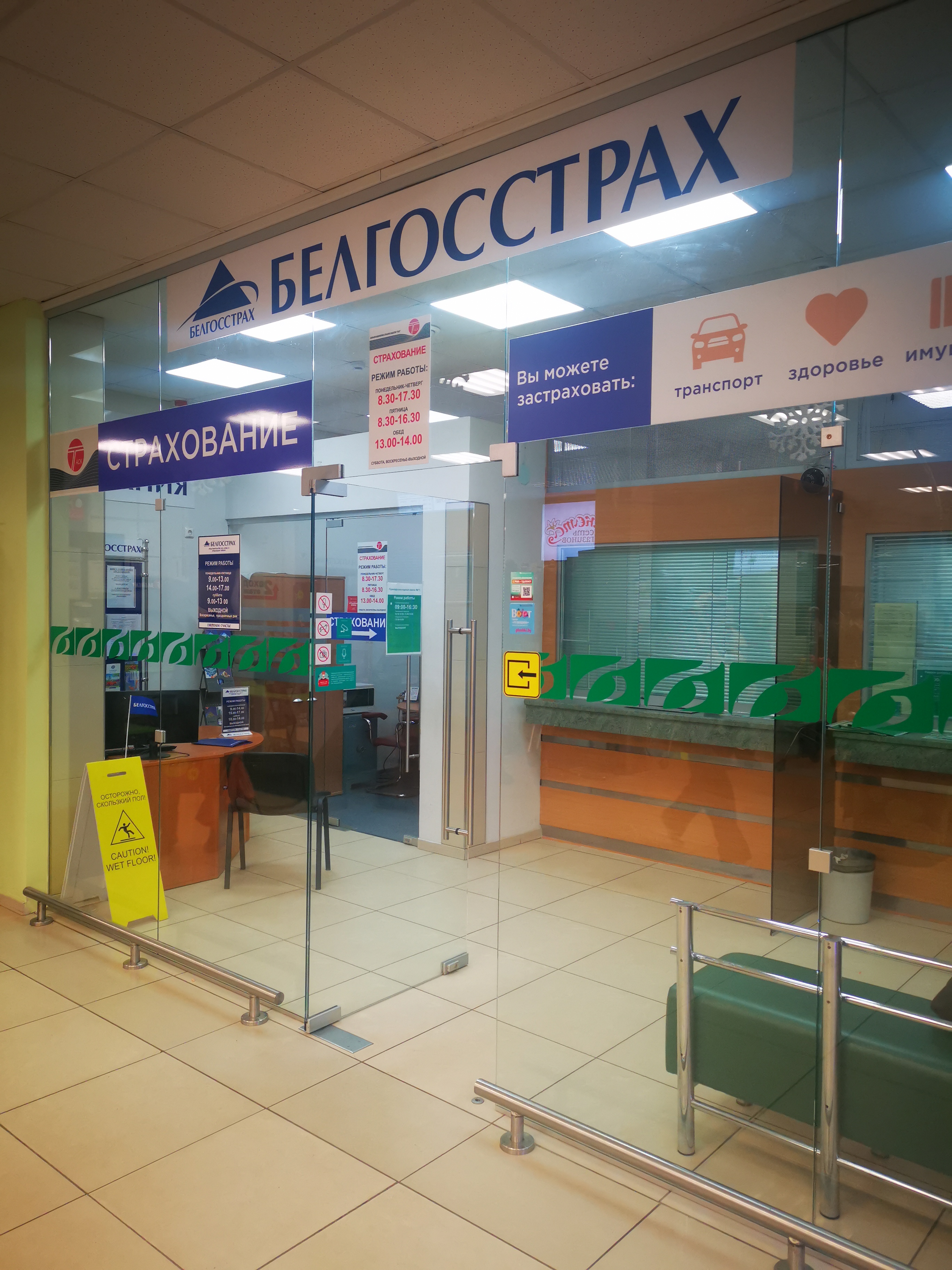 У такіх выпадках на інфармацыйнай шыльдзе ўказваецца час аднаўлення працы і нумар тэлефона страхавога агента)