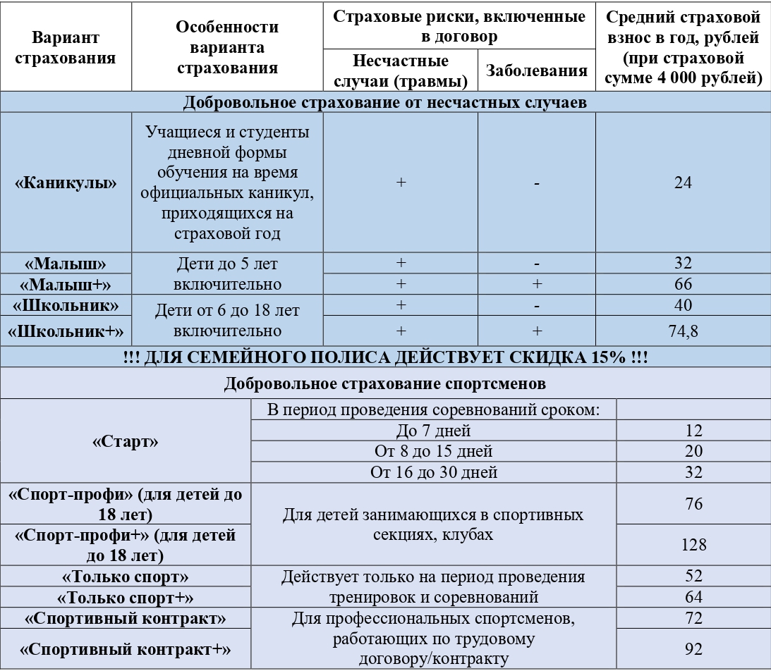С 1 мая по 31 июля 2026 года, покупая полис добровольного страхования от несчастных случаев и заболеваний или полис добровольного страхования спортсменов, Вы принимаете участие в развитии и улучшении материально – технической базы учебных и спортивных учреждений по всей стране.